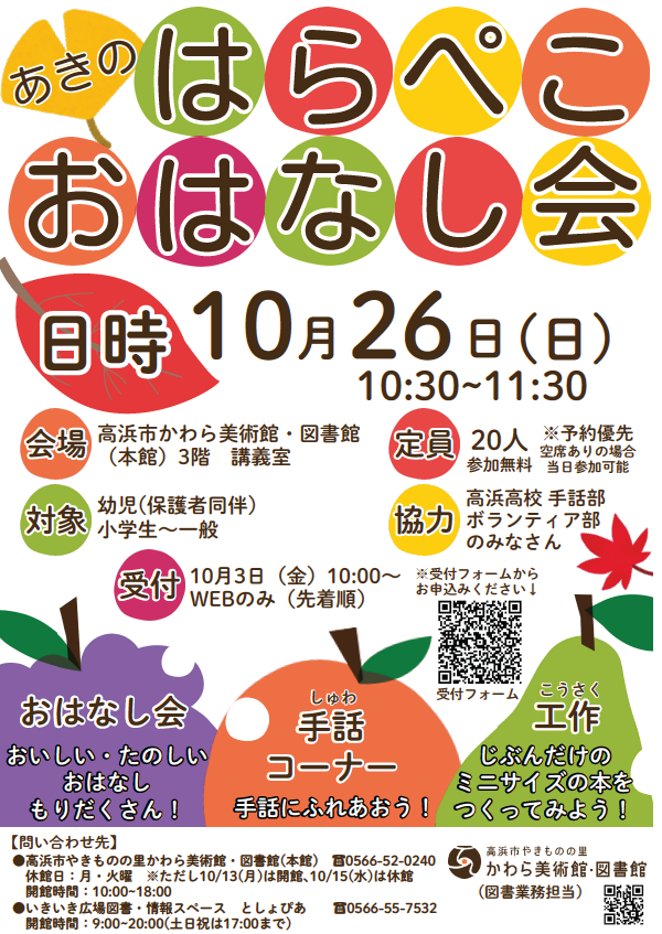 【イベント内容】秋のおはなしを聞いて、手話にふれあい、じぶんオリジナルの本を作って楽しみましょう♪